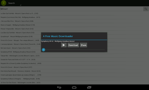 Download your favorite songs. Download mp3, set as rigtons. You can also share music with your friends using WhatsApp, Facebook or by e-mail.